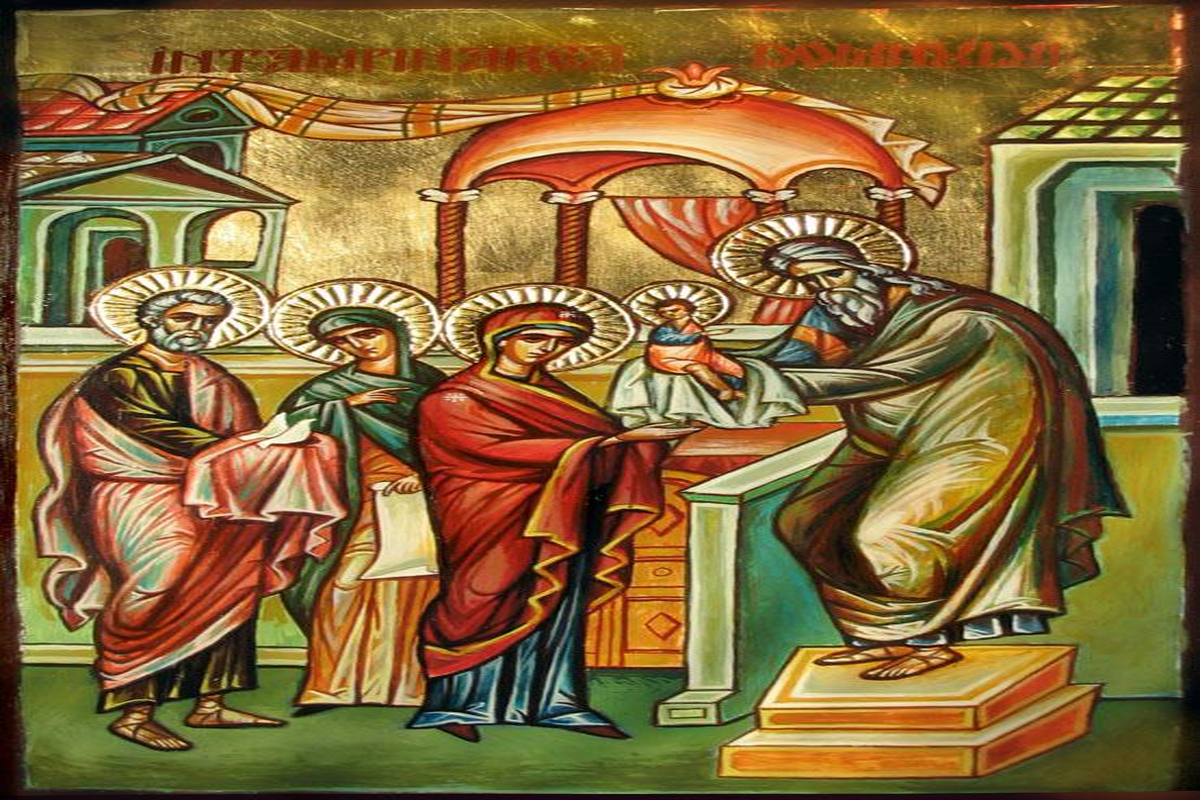 După Nașterea Domnului Iisus Hristos, trecând patruzeci de zile și împlinindu-se vremea curăției celei legiuite, Preacurata și Preabinecuvântata Fecioară Maria, împreună cu Sfântul Iosif, logodnicul, pleacă din Betleem și vine la Ierusalim, în Biserica lui Dumnezeu, purtând în brațe pe Hristos Pruncul, Cel de patruzeci de zile. Scopul venirii lor nu este o simplă vizită, ci împlinirea Legii Domnului: curățirea rânduită după naștere, aducerea jertfei cuviincioase și punerea înaintea Domnului a celui întâi-născut, potrivit poruncii date lui Moise.