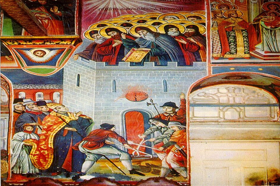 Ceea ce a urmat a fost o prigoană cumplită. Mulți părinți au fost spânzurați, arși de vii sau decapitați. Mănăstirile Vatoped și Iviron au fost primele lovite, iar sângele mucenicilor a curs în valuri. În această atmosferă de teroare și martiriu, rândul suferinței a ajuns și la Mănăstirea Zografu, mănăstire bulgară aflată sub ocrotirea Maicii Domnului.