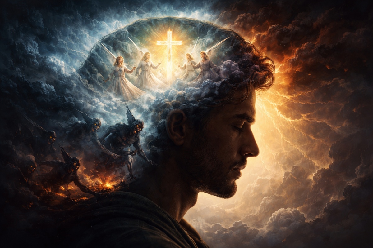 În învățătura ortodoxă, păcatul nu începe cu fapta, ci cu gândul. Diavolul nu poate forța voința omului, dar poate sugera, poate insufla gânduri, încercând să atragă mintea spre rău. Aceste gânduri sunt ca niște semințe aruncate în ogorul inimii. Dacă omul le respinge, ele se usucă; dacă însă le acceptă, ele încolțesc și cresc.