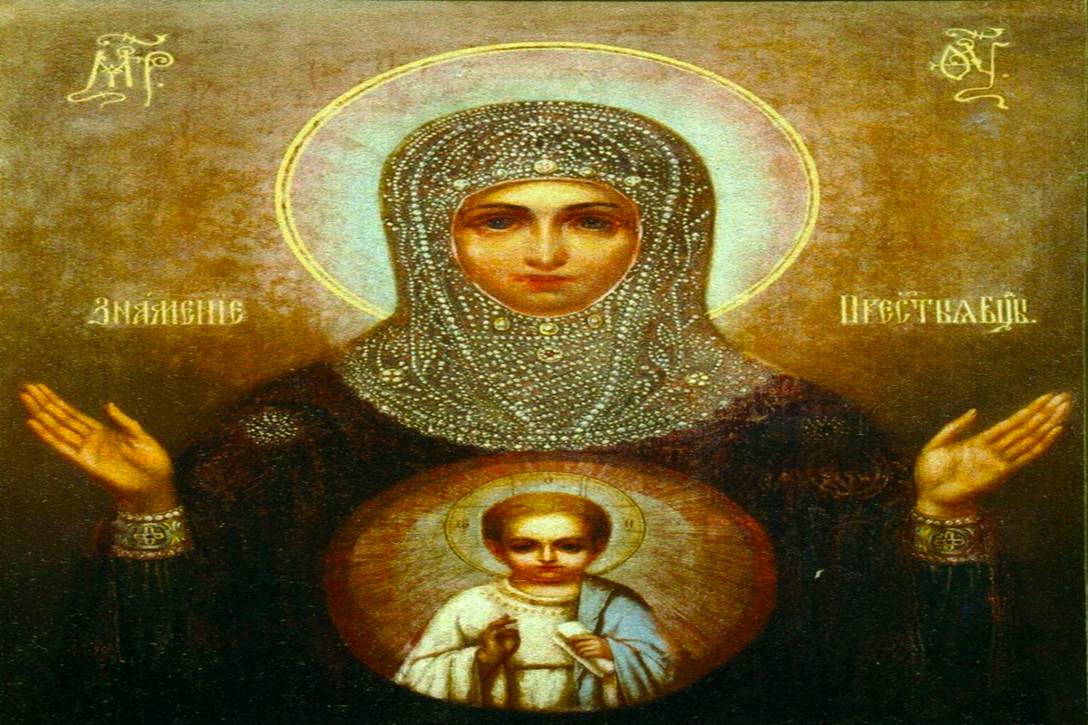 În icoana „a Semnului”, Maica Domnului este zugrăvită cu mâinile ridicate în rugăciune, iar pe pieptul ei, în medalion, se află Pruncul Iisus, arătând că El este Cuvântul Întrupat, Dumnezeu făcut om spre mântuirea lumii. Această icoană exprimă în mod profund unirea dintre cer și pământ, dintre Dumnezeu și umanitate, prin pântecele feciorelnic al Maicii Domnului.