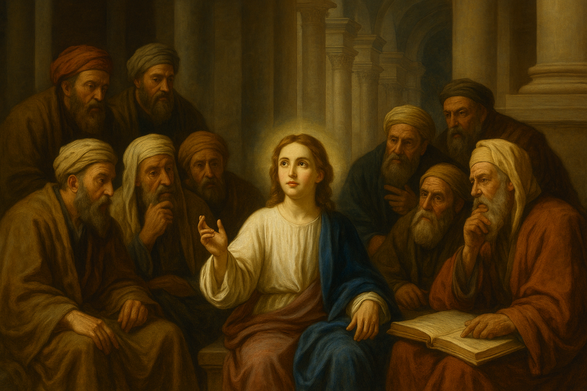 În mijlocul Templului din Ierusalim, printre bătrânii învăţaţi ai Legii, stătea un copil de doisprezece ani. Nu era un copil oarecare. Cei care Îl ascultau erau uluiţi de înţelepciunea Sa, iar cei care Îl întrebau primeau răspunsuri care depăşeau cu mult înţelegerea minţii omeneşti.