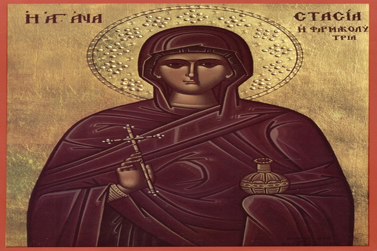 Cu apele fecioriei curăţindu-te, cuvioasă, cu sângele muceniciei încununându-te, Sfântă Muceniţă Anastasia, dai celor ce sunt în nevoi tămăduiri de boli şi mântuire celor ce se apropie către tine din inimă; că tărie ţi-a dat ţie Hristos, Mirele tău, Cel Ce izvorăşte har pururea curgător.