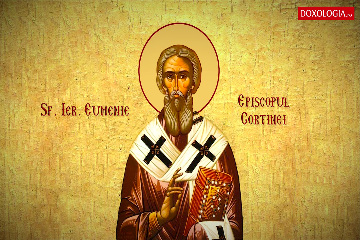 Pe data de 18 septembrie, Biserica Ortodoxă face pomenirea unuia dintre marii păstori și ierarhi ai secolului al VII-lea, Sfântul Ierarh Eumenie, episcopul Gortinei din Creta, un slujitor plin de blândețe, smerenie și dragoste de oameni, dar și un mare făcător de minuni. Viața sa este o adevărată icoană a slujirii lui Hristos, căci a unit în el curăția monahului, râvna propovăduitorului și grija părintească a arhiereului.