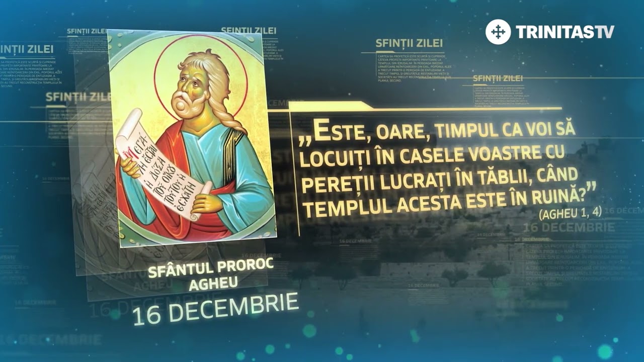 În rândul prorocilor Vechiului Testament, Sfântul Proroc Agheu ocupă un loc aparte, fiind unul dintre ultimii mari vestitori ai voii lui Dumnezeu înainte de întruparea Domnului Iisus Hristos.