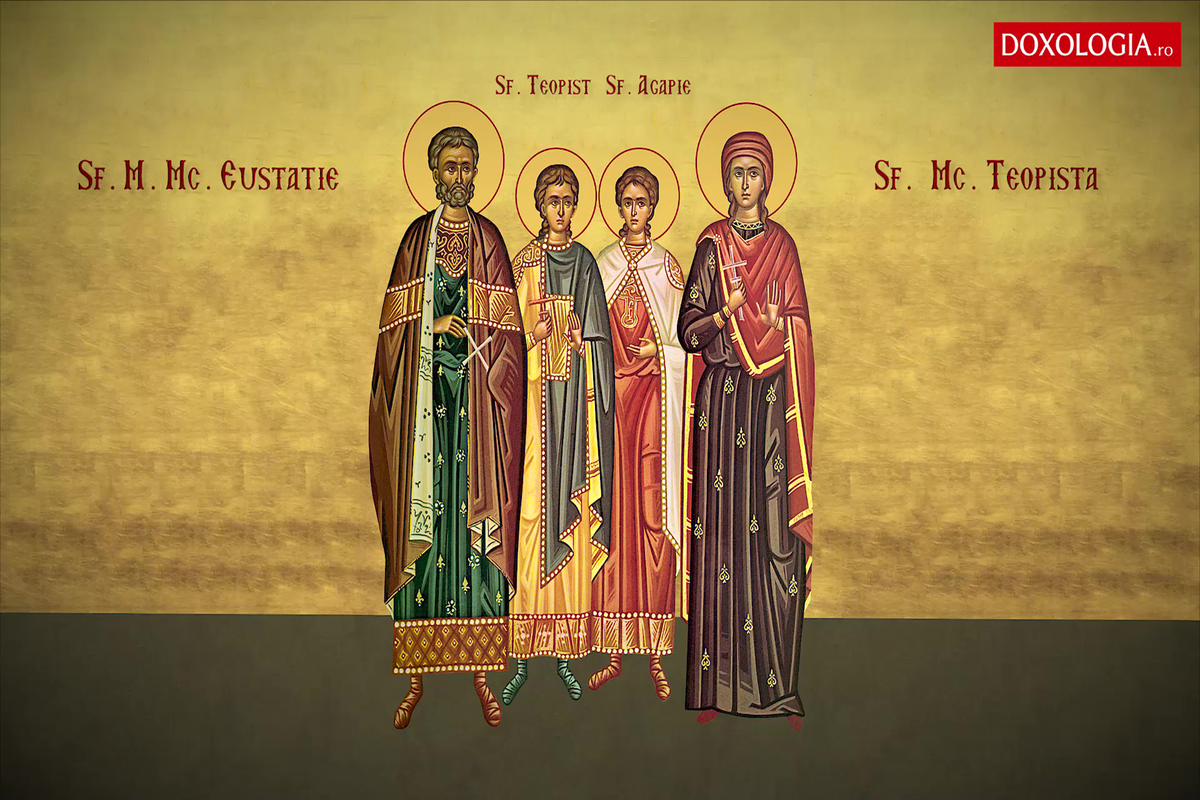 Sfinții Mari Mucenici Eustatie, Teopista și fiii lor, Agapie și Teopist, au fost o familie unită în credință, încercată prin necazuri, dar întărită prin harul lui Dumnezeu