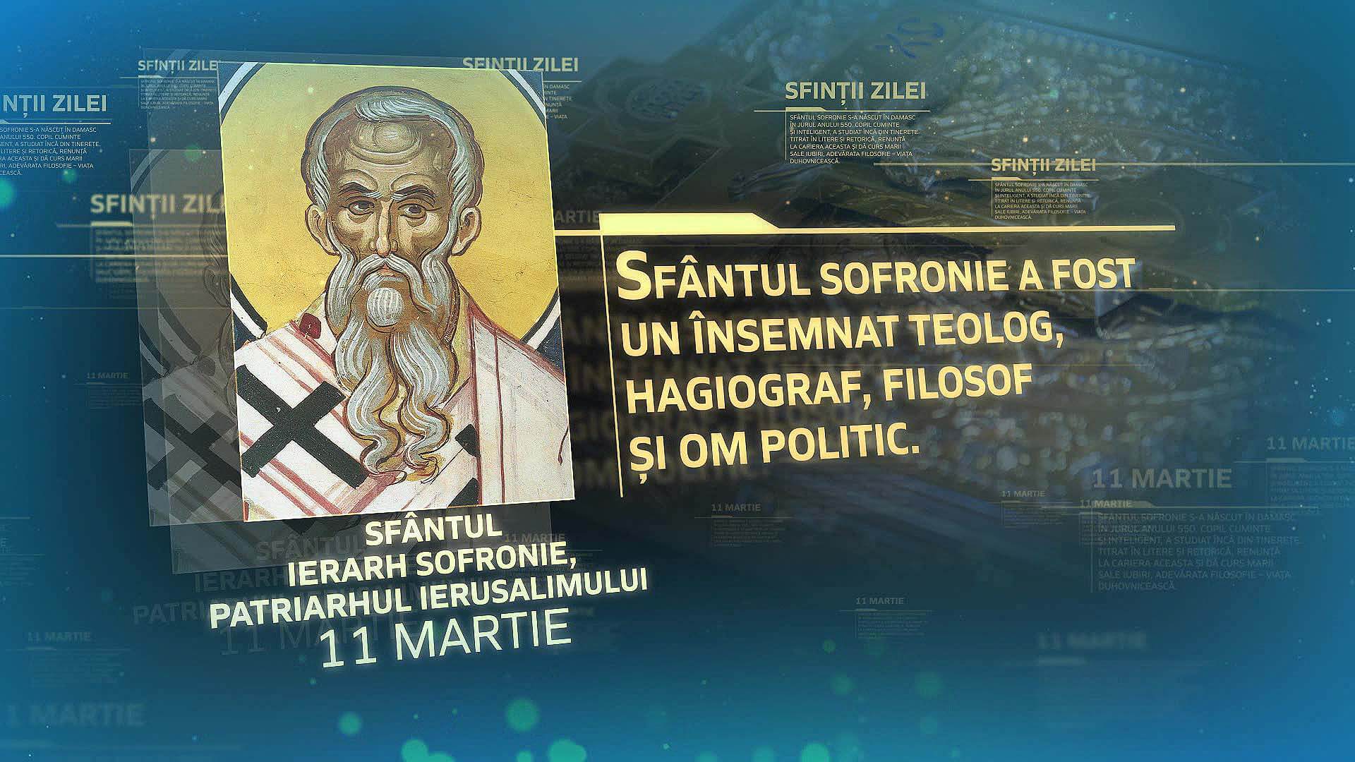 Prin rugăciunile Sfântului Ierarh Sofronie, Patriarhul Ierusalimului, să ne întărească Dumnezeu în dreapta credință și în dorința de a trăi o viață plăcută Lui. Amin.